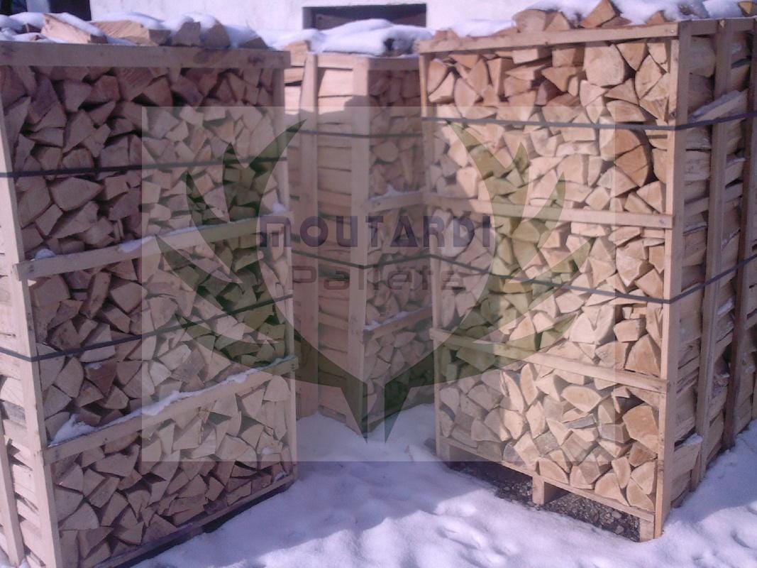 Das Brennholz wird in Standard-Paletten/Europaletten von 1x1x1,8 m verpackt, die 1 Kubikmeter Holz enthält. Das Gewicht einer Palette beträgt 1-1,1 Tonne/Kubikmeter im grünen Zustand und etwa 800-850 kg/Kubikmeter nachdem es trocken ist. Die Trocknung erfolgt in der warmen Jahreszeit auf natürliche Weise und in der kalten Jahreszeit industrialisiert. Unsere Kapazität für die industrialisierte Trocknung von Brennholz beträgt etwa 200 Paletten (oder Kubikmeter) pro Monat.