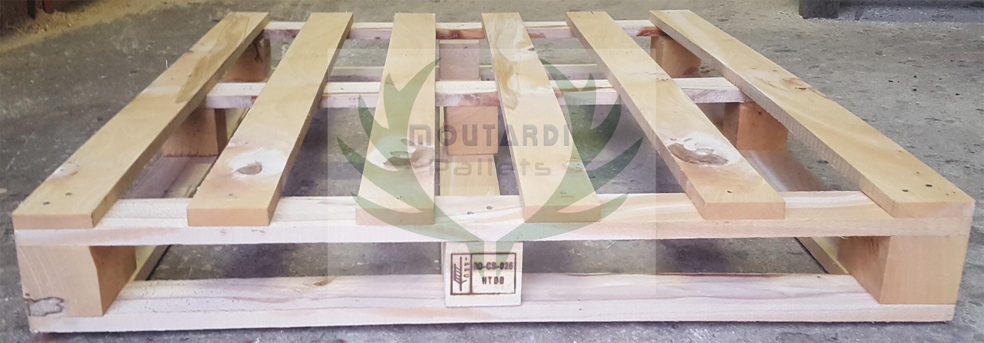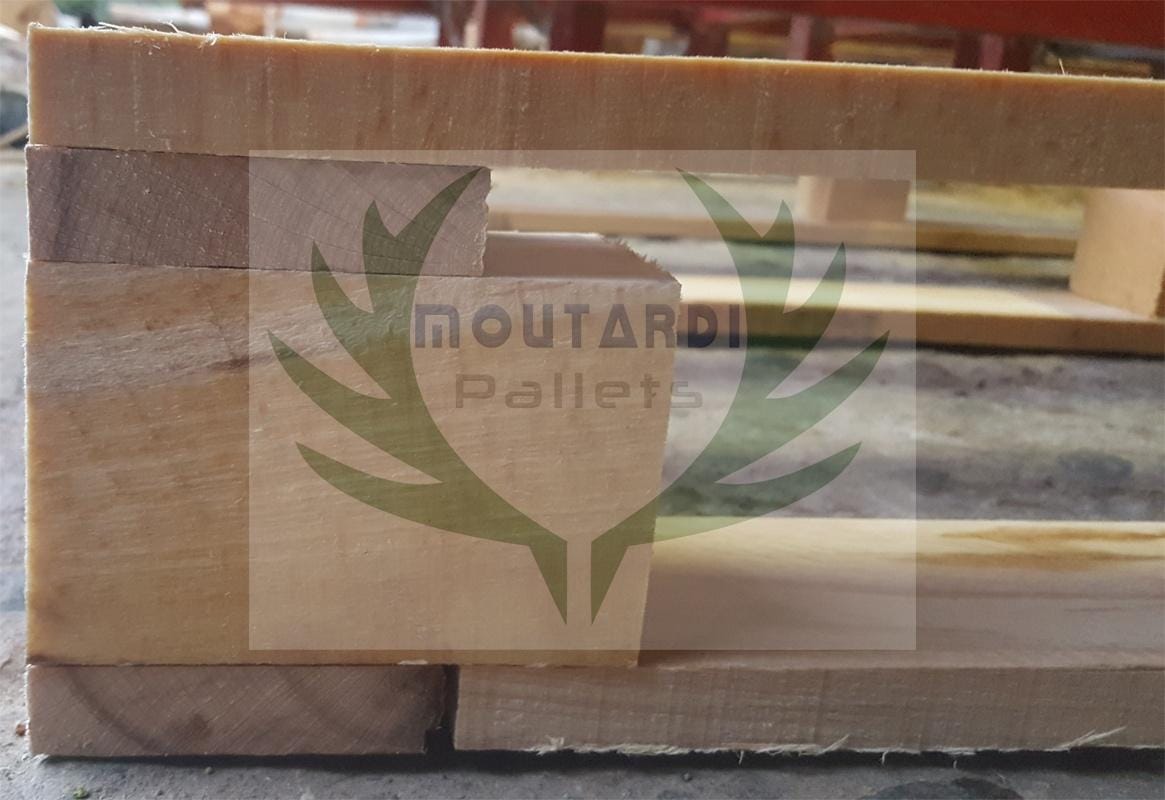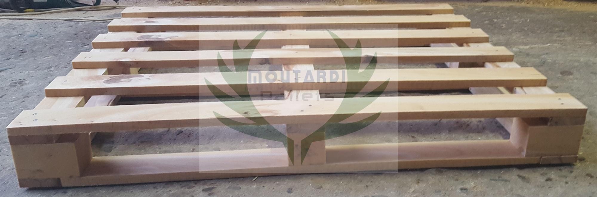 In anderen Fällen jedoch (vor allem, wenn schwere Metallteile auf die Paletten geladen werden) kann das von diesen Paletten getragene Gewicht circa zwei Tonnen erreichen oder sogar überschreiten, und die Palette erhält dann eine robustere Konfiguration mit mindestens 7 Brettern auf der oberen Ebene, die bis zu 22 mm dick sein können.